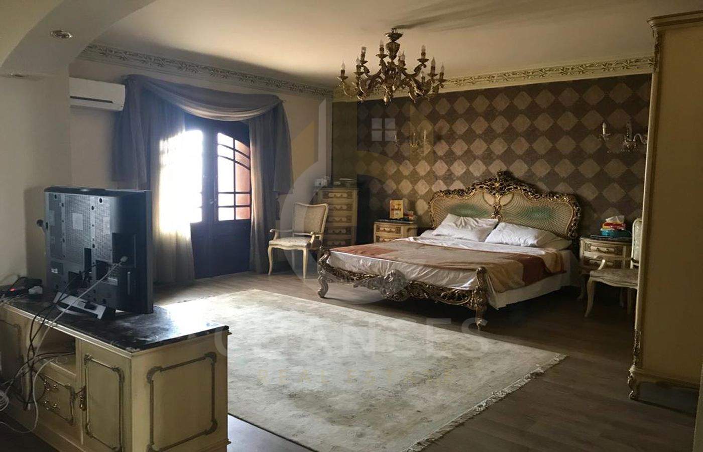 تصميم: بدروم وارضي وأول وشقة في الروف حجرتان وصالة والفيلا تحتوي على 6 غرف نوم كلها بها حمام ودريسنج غرفة مكتب و 6 صالونات وبها حمام سباحة واسانسير جراج و بها شقة فى الرووف غرفتين و حمام و مطبخ