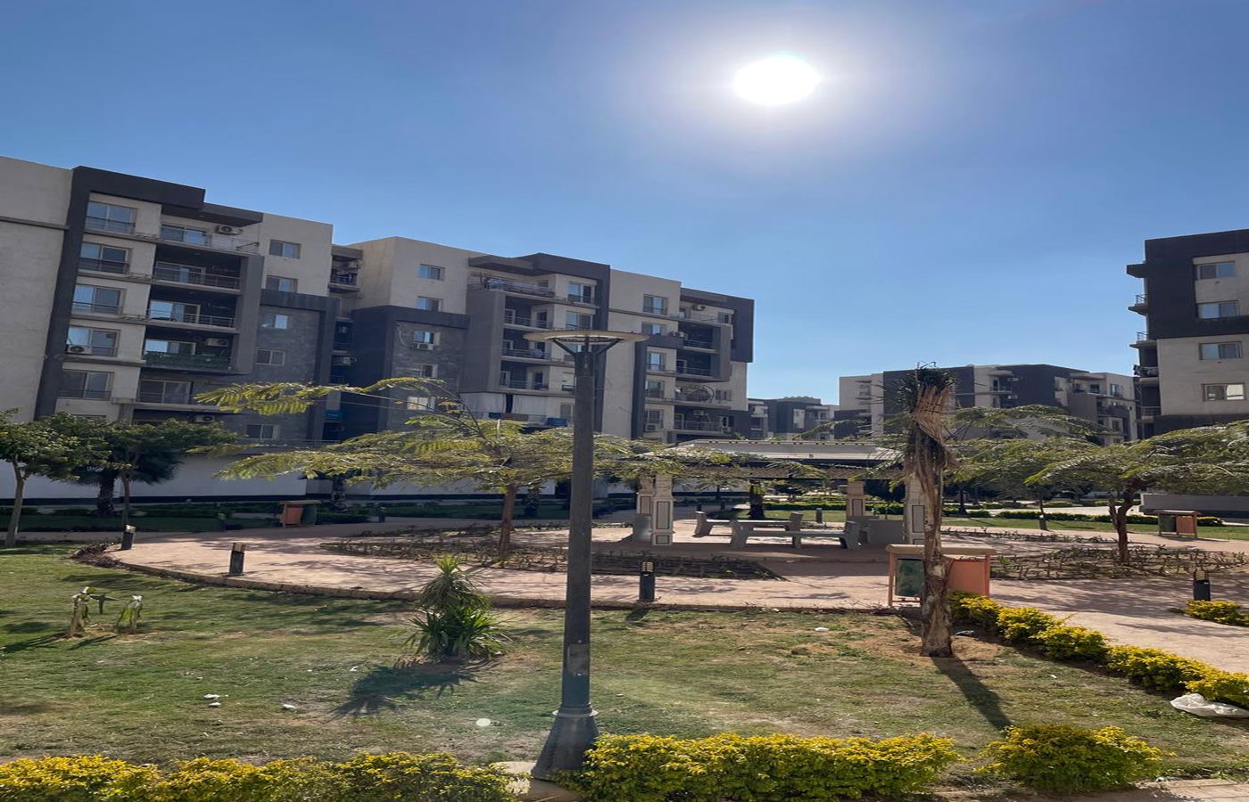 جميع الارضيات كلها بورسلين والحمامات بها زجاج شاور لحمامين