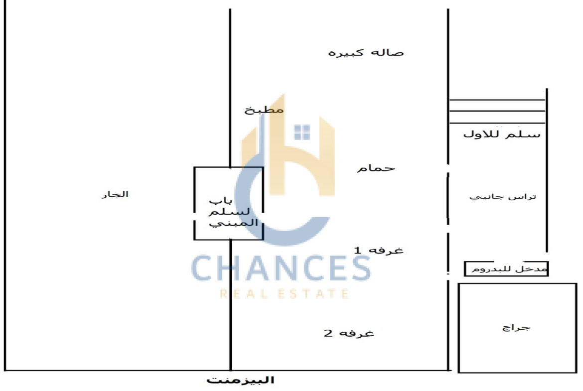الدور :نصف البيزمنت + نصف الارضي + ربع الاول الخلفي للغرف