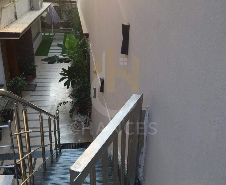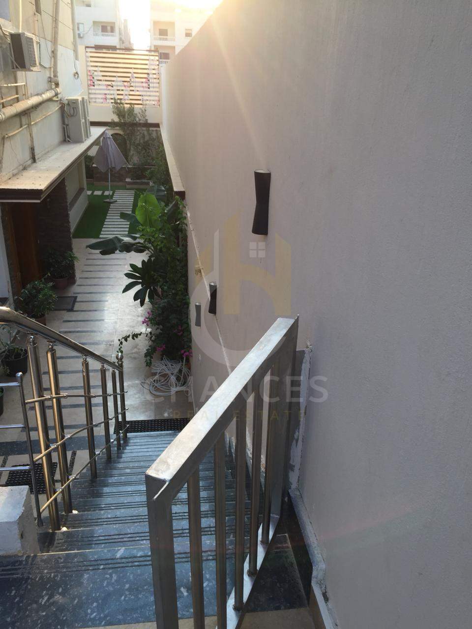 – نصف الحديقة مرخام + درابزين استانلس + سلم رخام