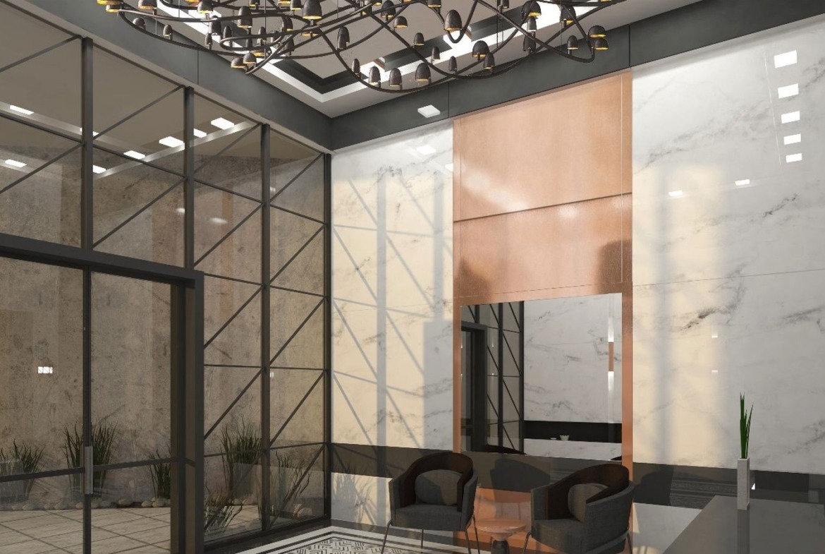 واجهات زجاجية: تعكس ضوء الشمس وتوفر مساحة واسعة داخل الشقة