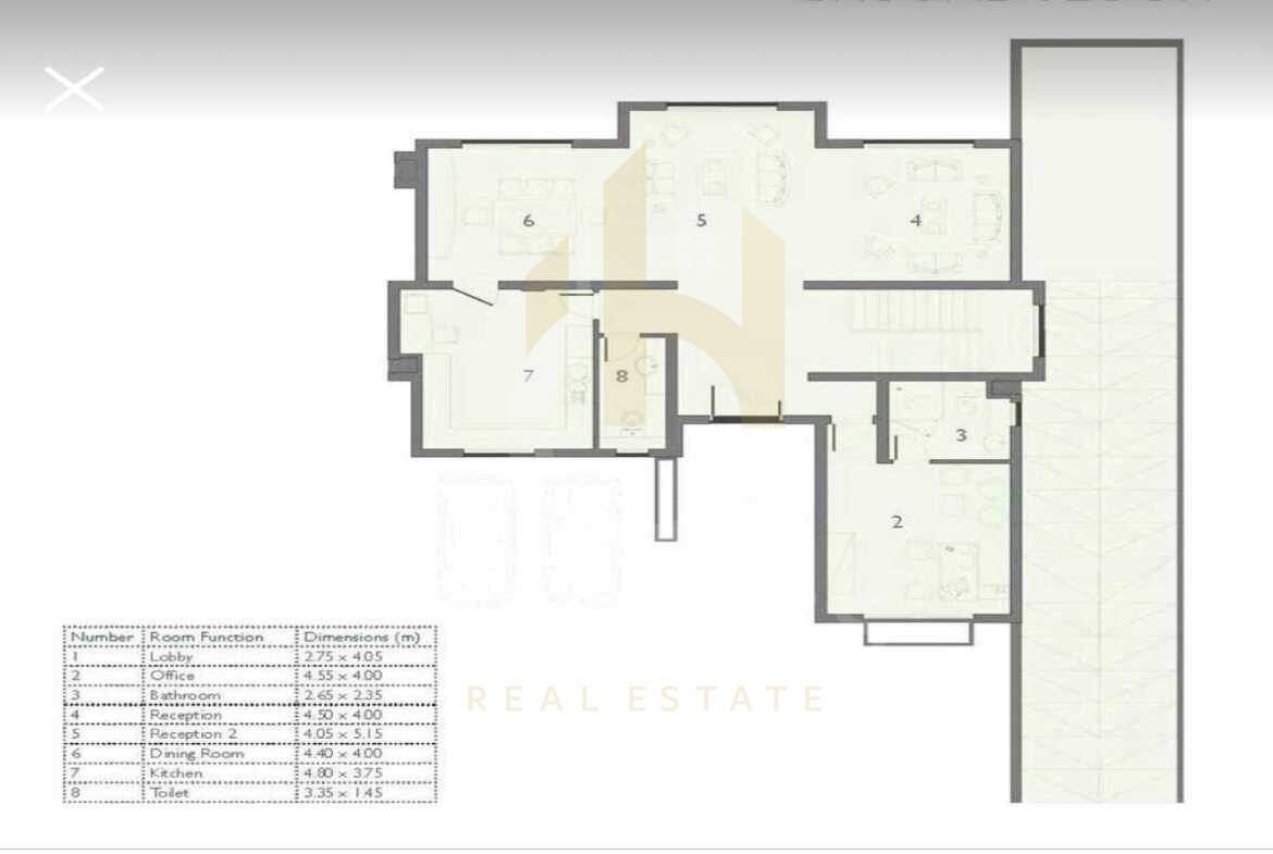 جولدن اسكوير التجمع – كمبوند اسوار – مساحة الارض 580 متر – ومبني علي 133م بإجمالي مساحة مباني 530م ” بيزمنت وارضي واول وروف” – نصف تشطيب