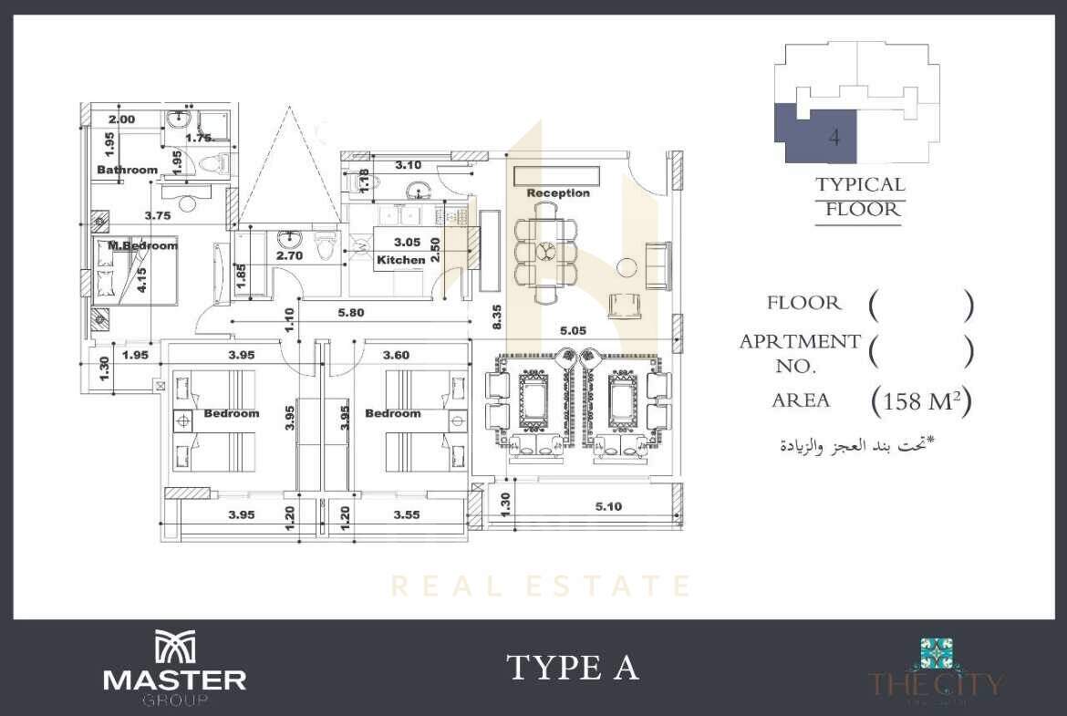شقة للبيع في كمبوند ذا سيتى في العاصمة الجديدة – مساحة 158 متر – الدور الخامس – نصف تشطيب – حصه بالجراج – مطلوب 2800000 كاش والمتبقى 300 الف علي سنتين ونص-السعر شامل الجراج