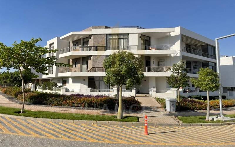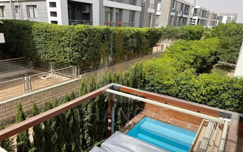 شقة للبيع في كمبوند تاج سلطان في التجمع الخامس – مساحة 130 متر – الدور الأول – فيو حمام سباحة و حديقة – نصف تشطيب – عدد 3 غرف نوم – عدد 2 حمام