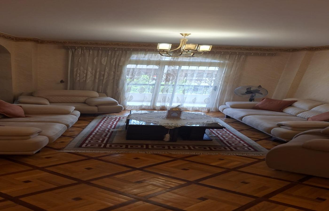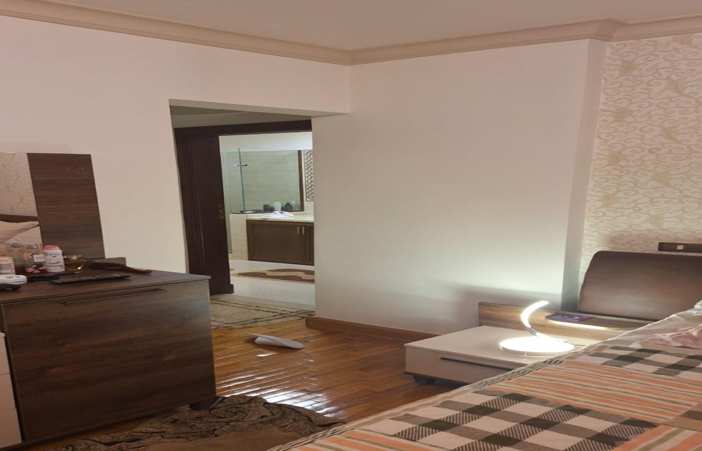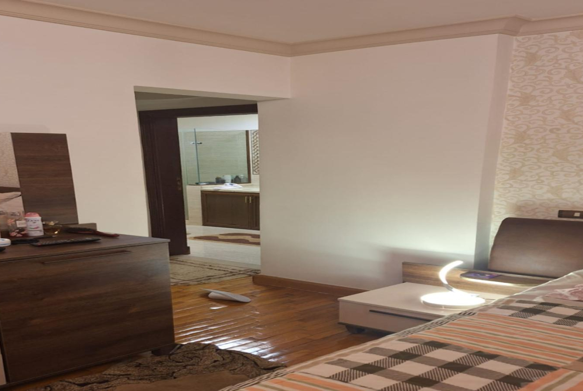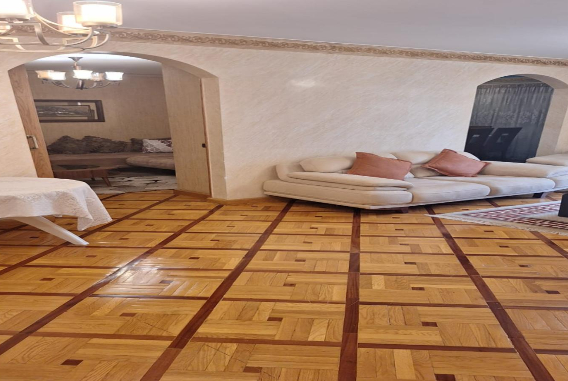 ثلاثةحجرات منها حجرة مفتوحة علي الريسبش – الشقة بالكامل باركيه أرو لزق والريسبشن خشب ارو معشق مع ماهوجني أحمر