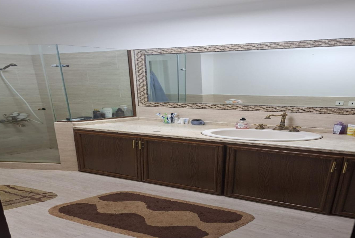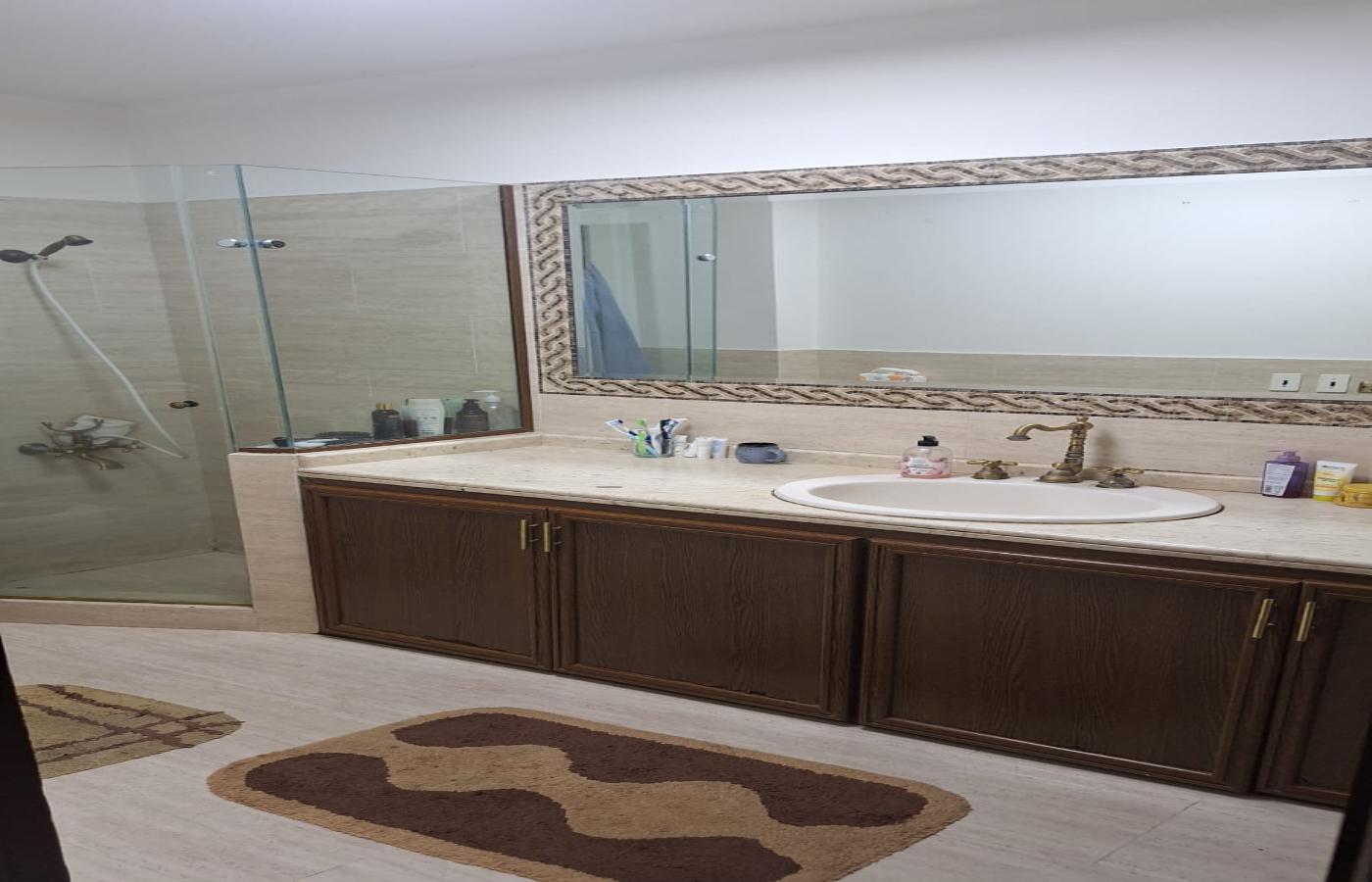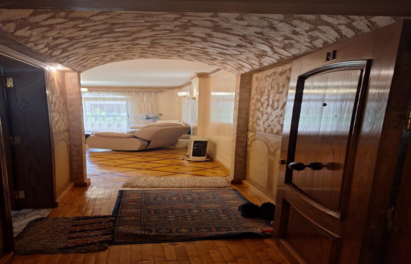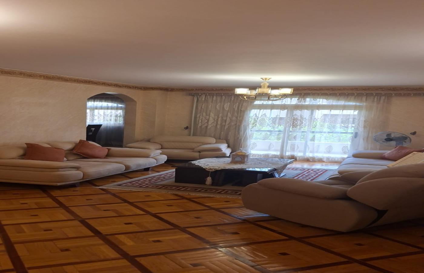 ثلاثةحجرات منها حجرة مفتوحة علي الريسبش – الشقة بالكامل باركيه أرو لزق والريسبشن خشب ارو معشق مع ماهوجني أحمر